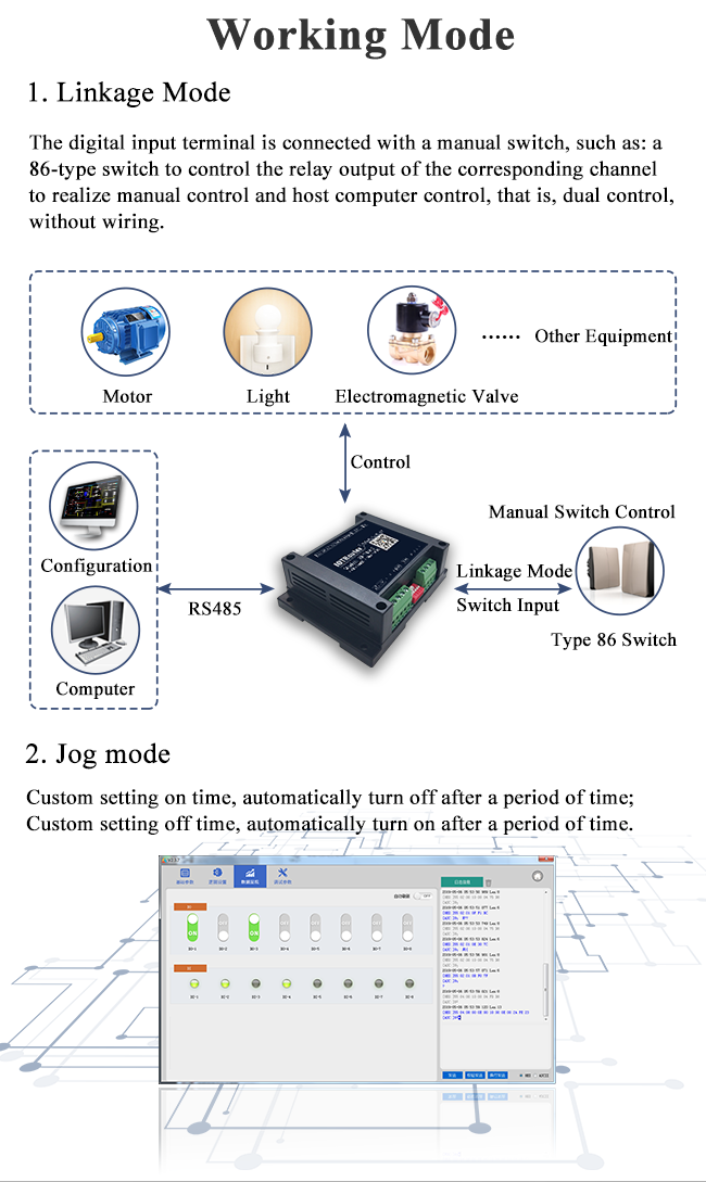 ZHT4400 is a serial port control module that provides 4 DI, 4 DO and a RS485 interface, support the standard Modbus RTU protocol, support dry wet node detection, support relay delay shut down after opening, we provide comprehensive technical supports. It can be widely used in pump control, access control monitoring, lighting control, such as valve monitor application scenario.